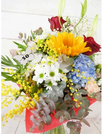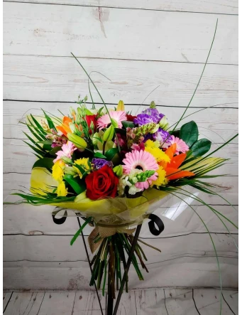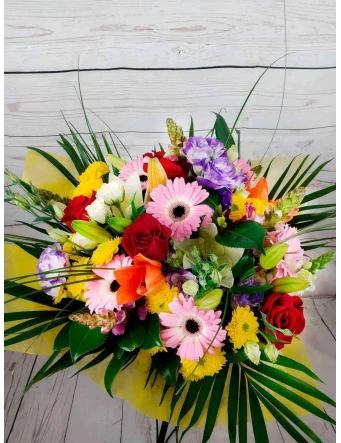 La atención al cliente fue detallada y útil. El ramo era una explosión de colores. La entrega a domicilio fue puntual y segura. ¡Mi floristería de confianza!