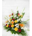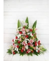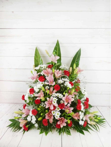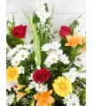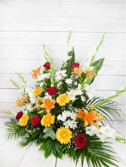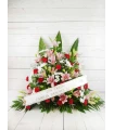Centro de rosas de buena categoría, discreto pero bien presentado, para homenajear a un amigo o un familiar fallecido.