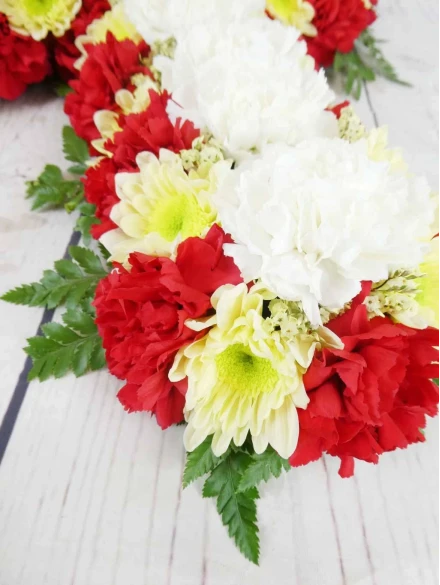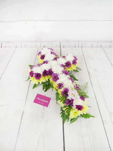 Almohadón de flores para tanatorios y funerales. En una forma alargada y no muy alta es un arreglo de flores ideal para acompañar el difunto durante el velatorio y luego colocarlo encima de la tapa del féretro durante...