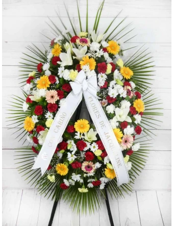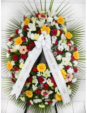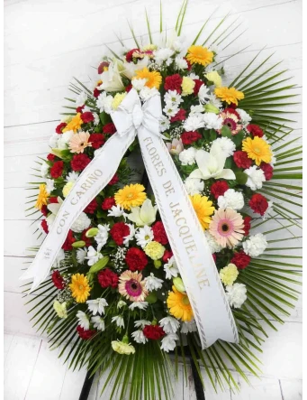 - Incluye cinta con texto personalizado (aprox. 50 letras) o tarjeta, para la familia del difunto. (Se podrá añadir en el proceso de compra)